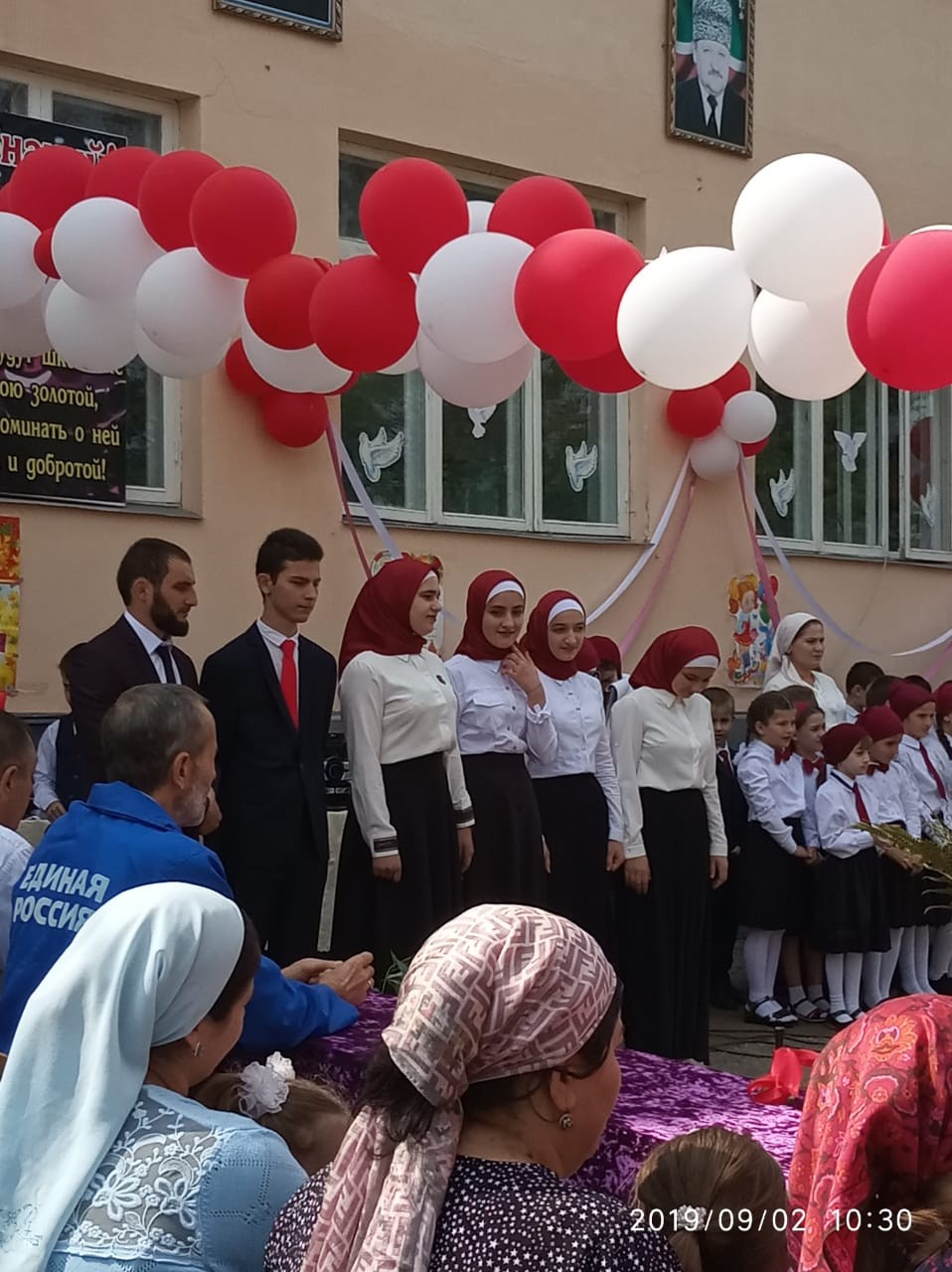 В последеий раз на торжественной линейке стоят выпускники 11 класса