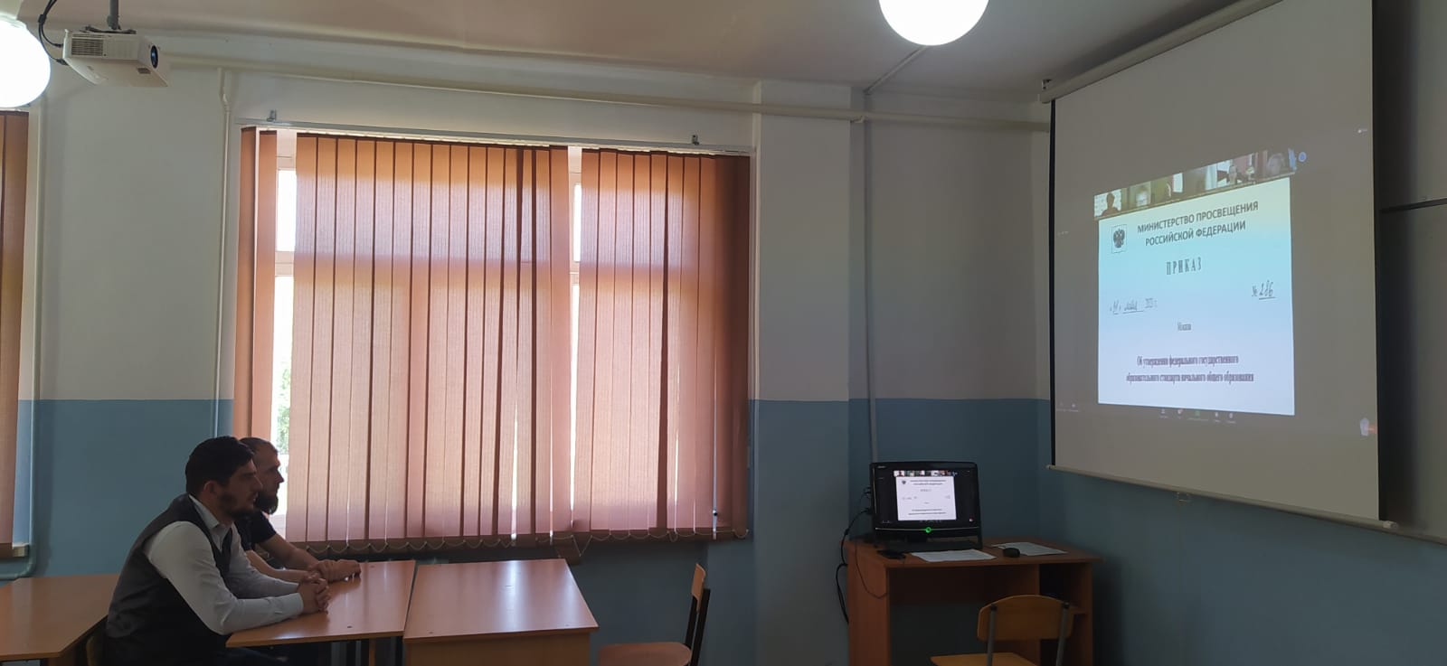 Учителя; математики Сатиханов М-А.С., информатики Магомадов Б.Н. обсудили просмотренную запись вебинара Всероссийского просветительского мероприятия на тему «Обновление содержания и методик преподавания предметов «Математика и информатика»