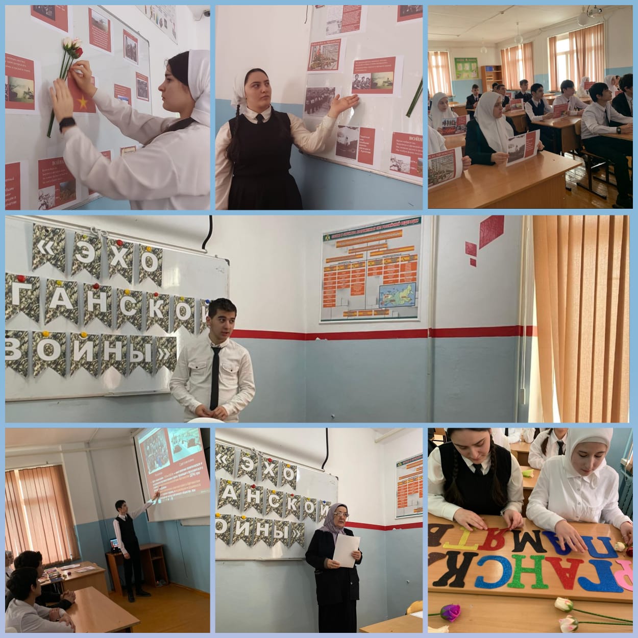 05.02.2025Во взаимодействии с отделом в Ножай-Юртовском районе УФСБ России по Чеченской Республике 05.02.2025г в школе прошло мероприятие,посвященное памяти россиян,исполнявших служебный долг за пределами Отечества"Эхо афганской войны"