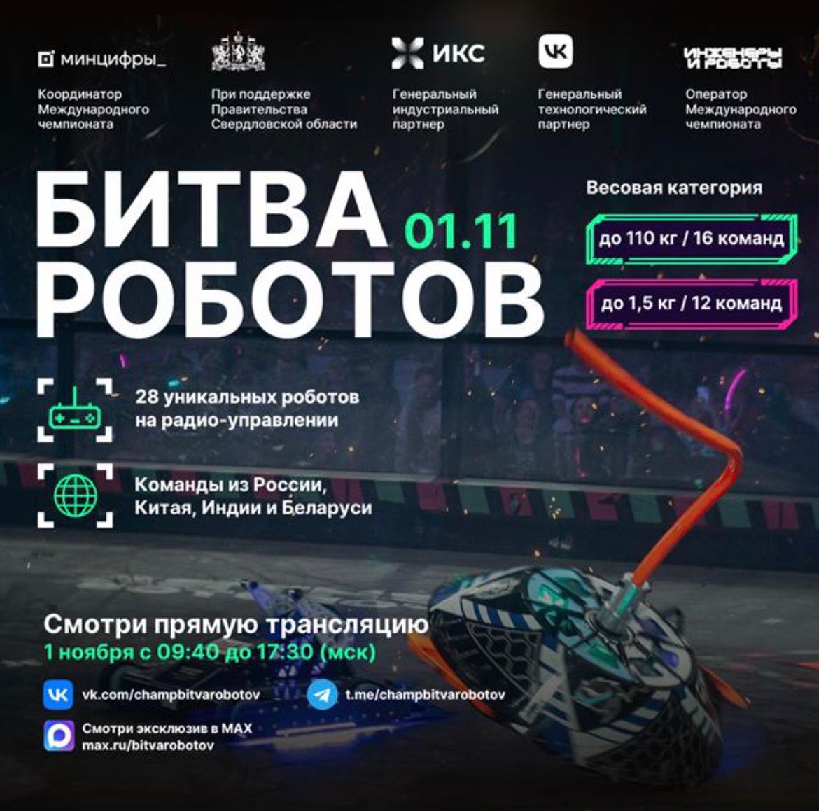 побороться за титул чемпиона битвы роботов 2025 года. На текущий момент прямую