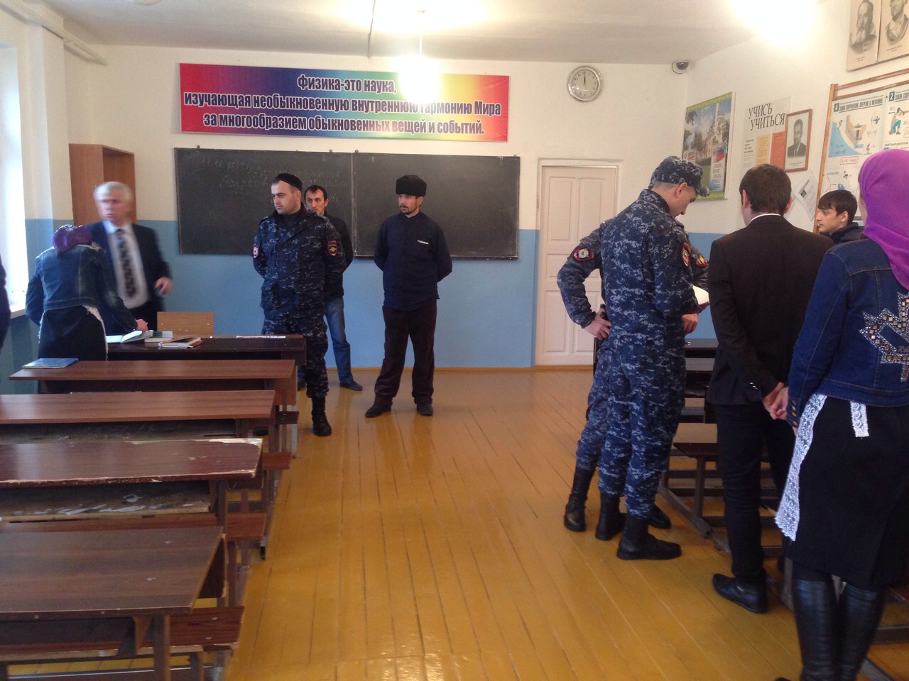 01.12.2014По поручению начальника РОВД Ножай-Юртовского района Гучигова Н. участковый уполномоченный полиции по Ножай-Юртовскому сельскому поселению Магамедов А. и с ним работники РОВД Толлаев В. и Абдулмуслимов Д. посетили школу с целью проверки посещаемости и учебы обучающихся.